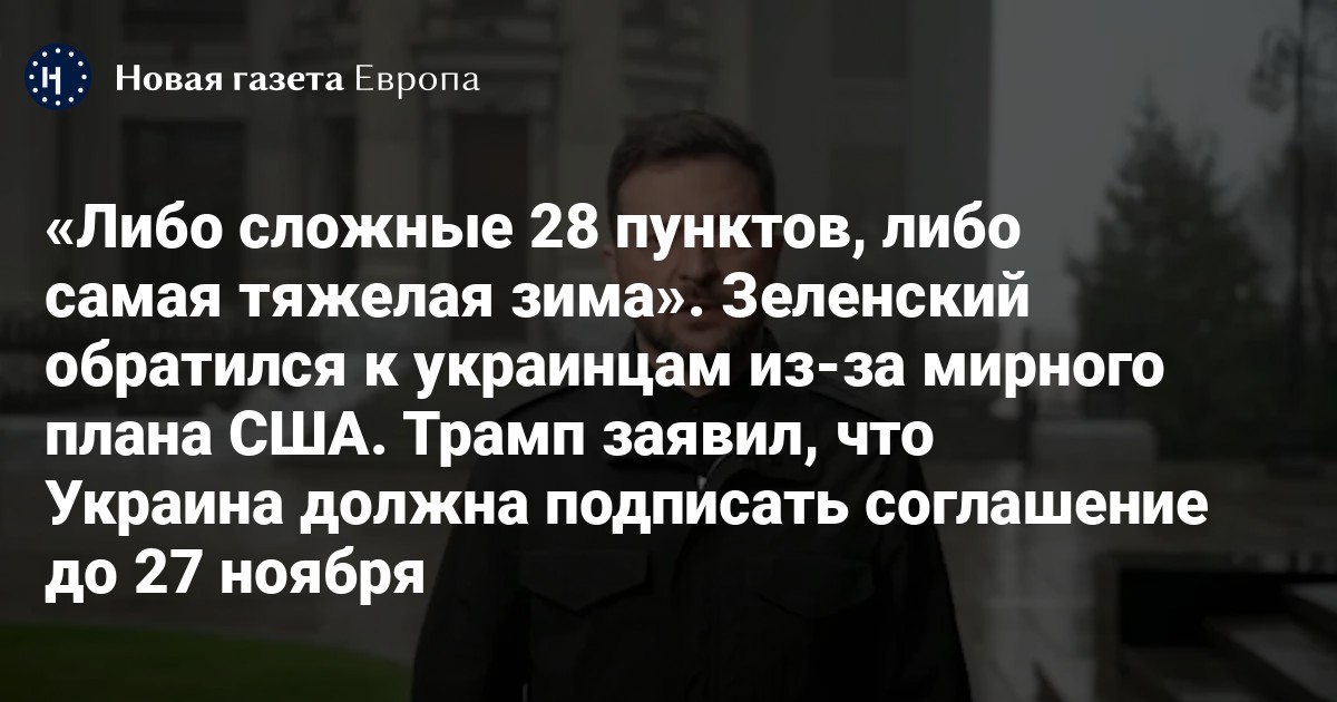 «Либо сложные 28 пунктов, либо самая тяжелая зима». Зеленский обратился к украинцам из-за мирного плана США. Трамп заявил, что Украина должна подписать соглашение до 27 ноября